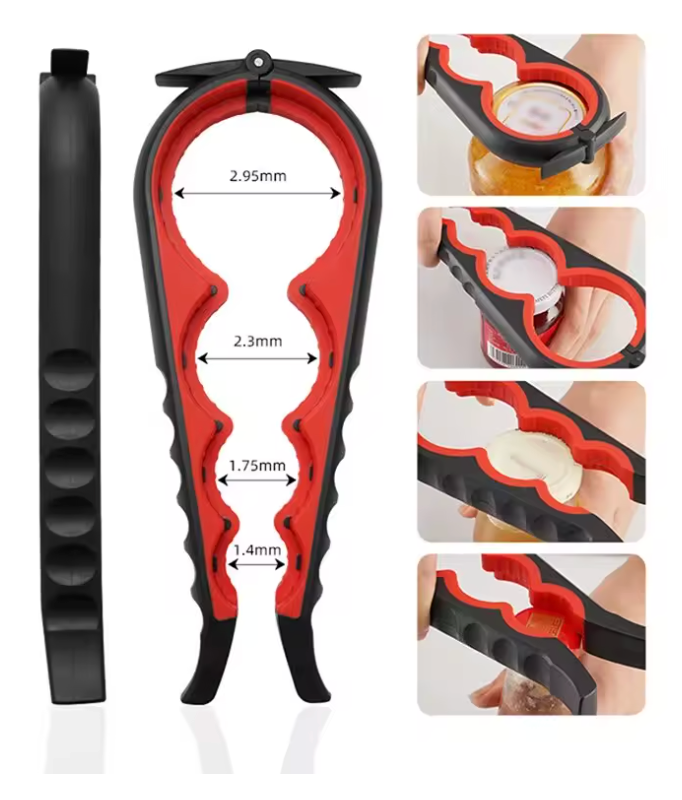 ZachtKracht heeft meerdere gripzones voor kleine flesdoppen, brede vacuümdeksels, ring-pulls en folies. In de praktijk dekt dit (bijna) alles in de keuken.